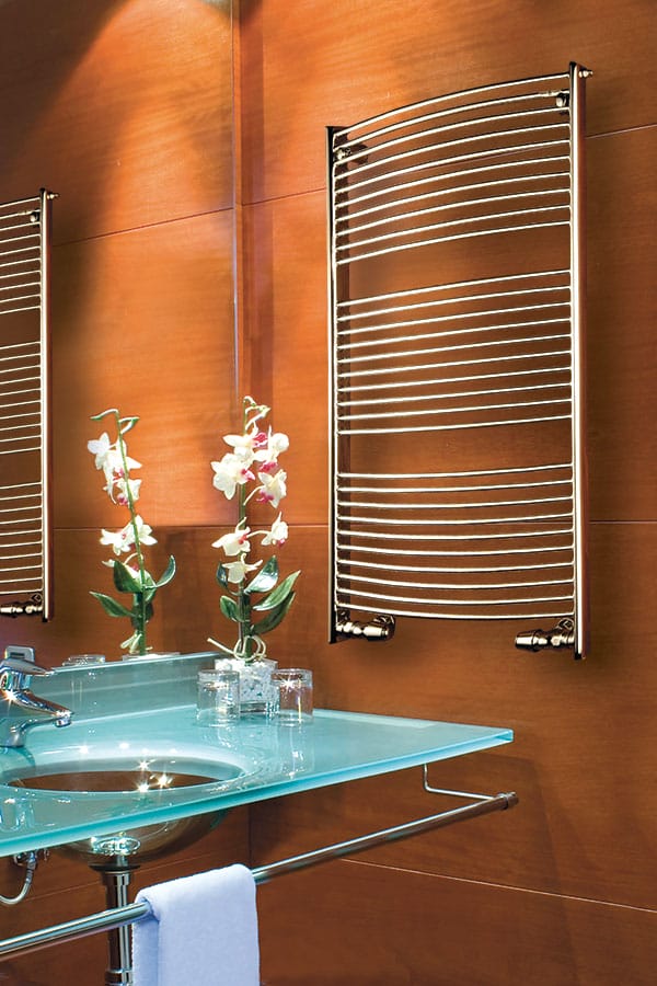 Le sèche-serviettes START se compose de tubes chauffants très fins ø12, reliés à des collecteurs verticaux exclusifs en forme d’ogive.